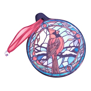 Each 4-inch acrylic circle ornament is upcycled and hand-decoupaged on both sides, then carefully sealed for durability. A natural wood bead and ribbon loop complete the design, ready for hanging on your Christmas tree, accenting a wreath, or topping a special gift.