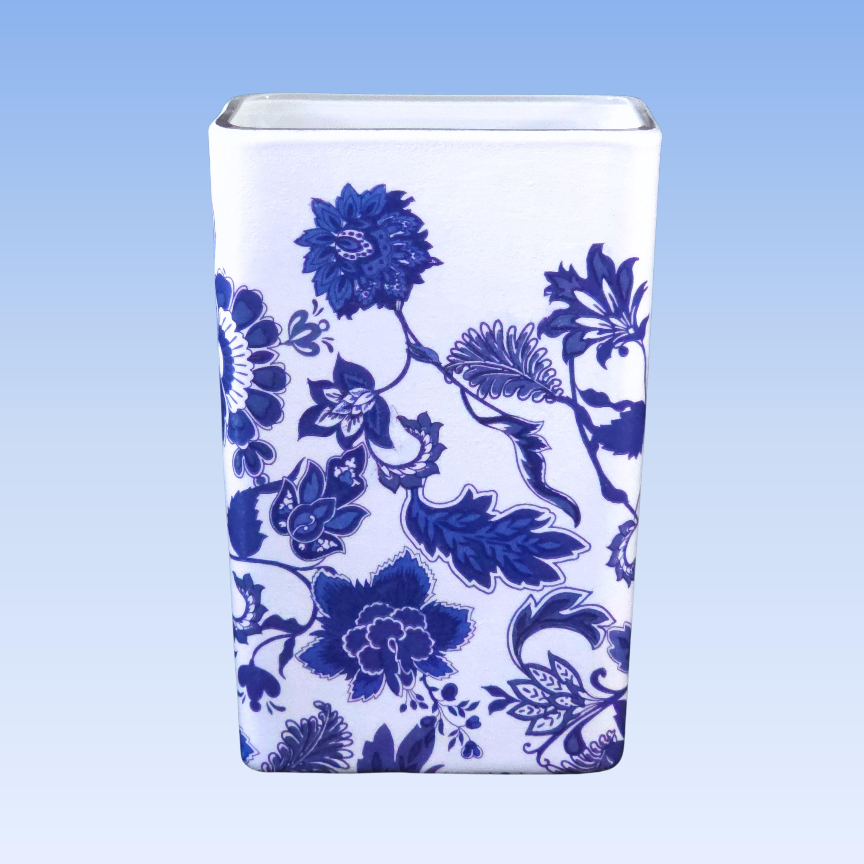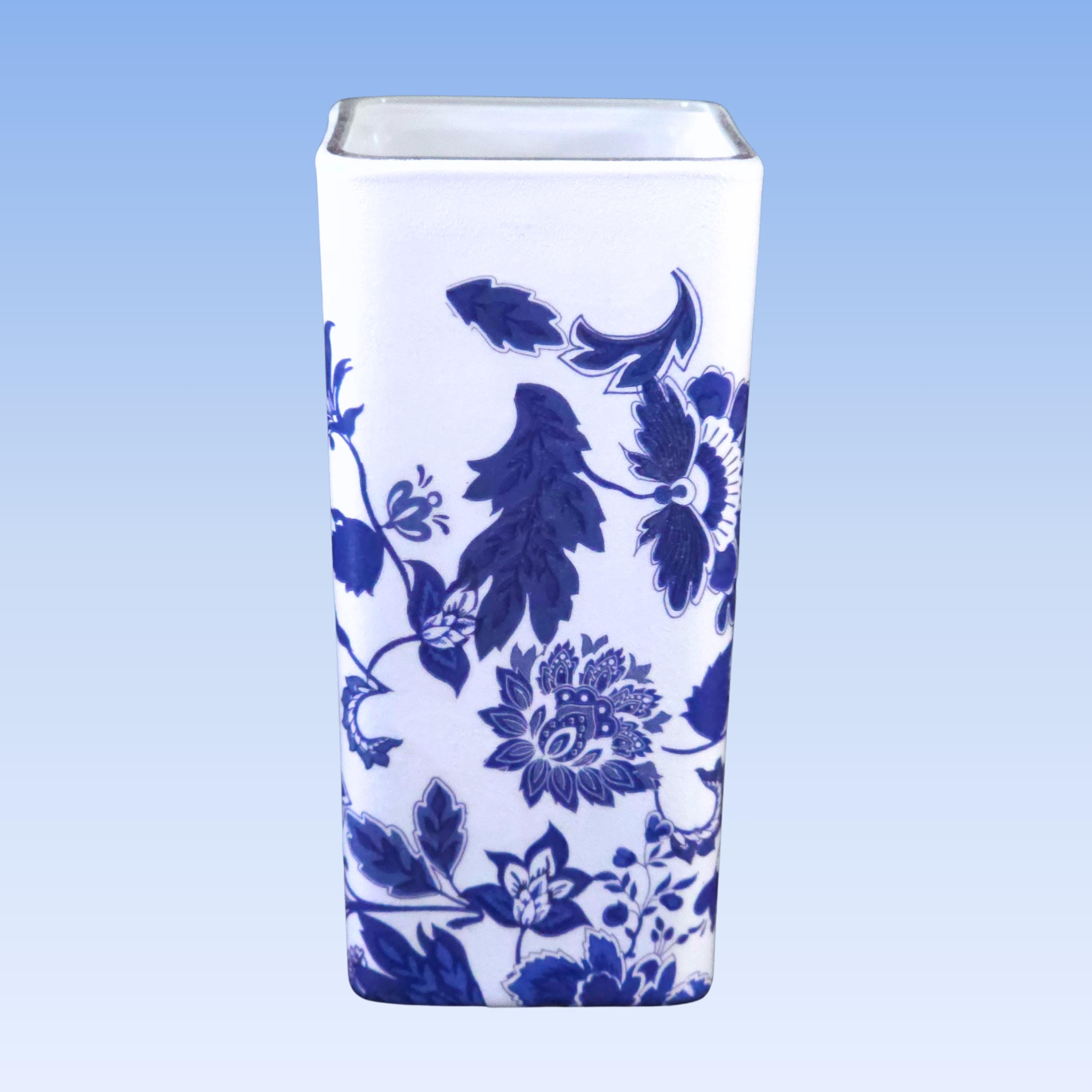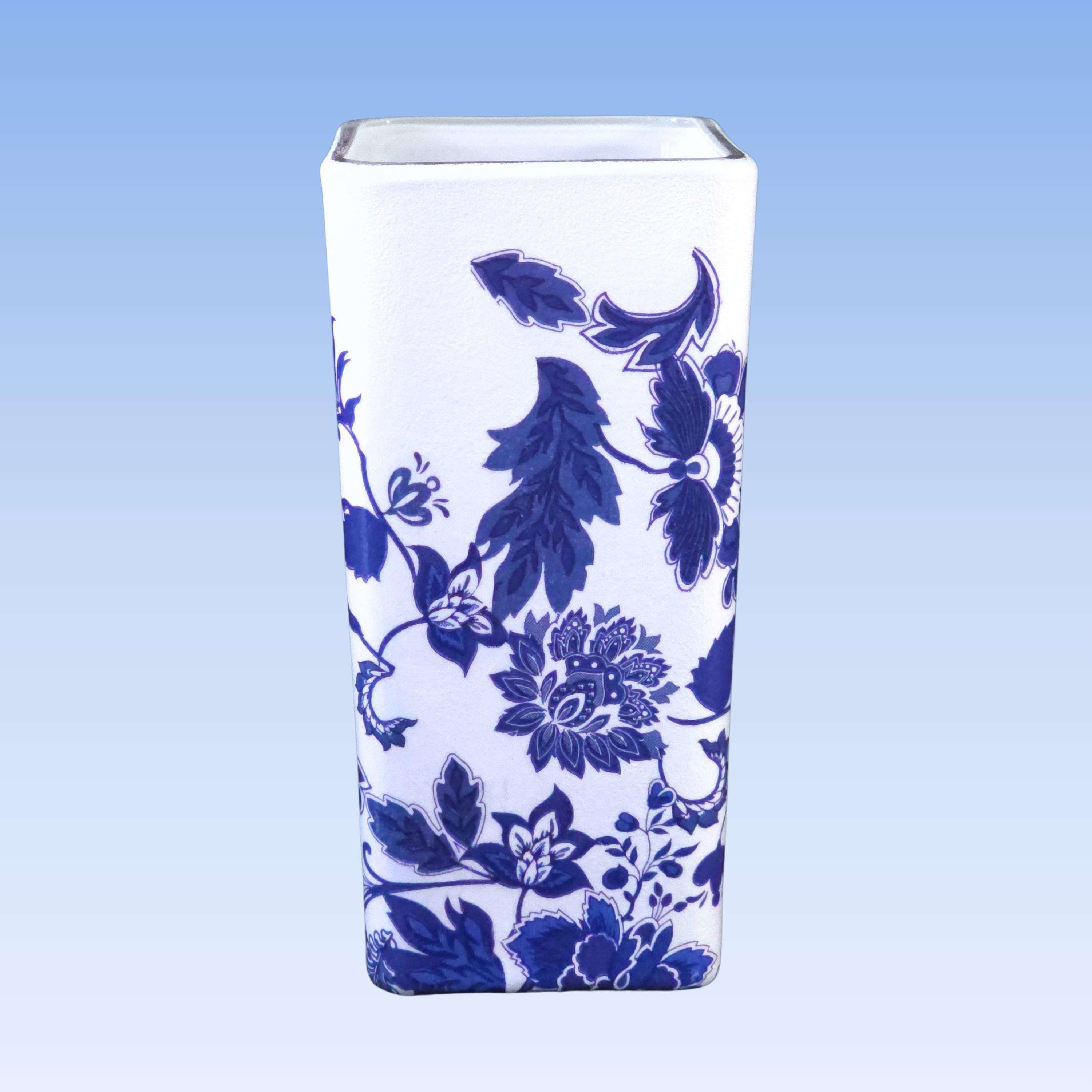 Inspired by the timeless elegance of traditional blue-and-white chinoiserie, this Architectural Glass Vase is designed as a refined decorative accent with a strong visual presence. Its clean, sculptural form and classic patterning make it equally striking displayed on its own or styled with fresh or dried florals.