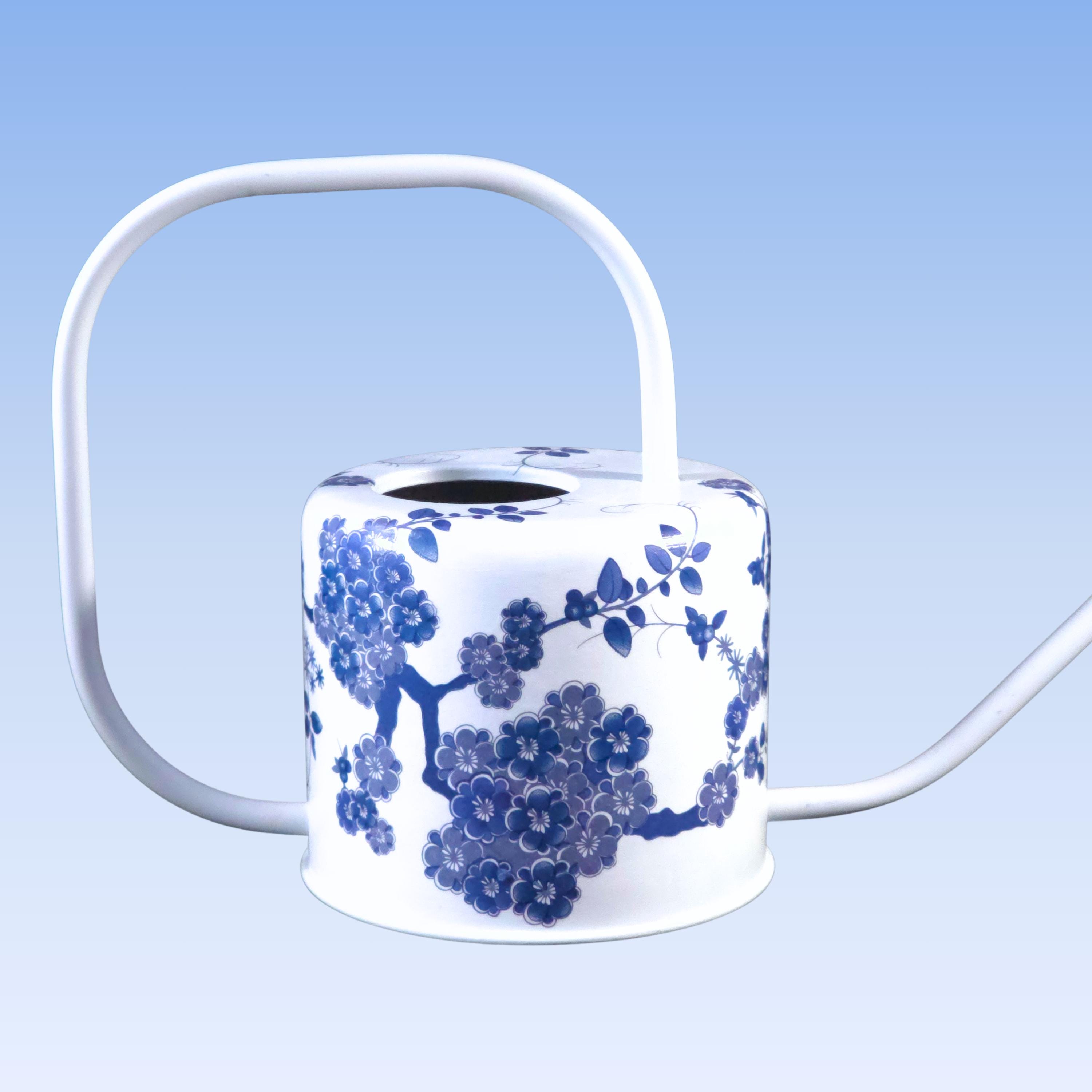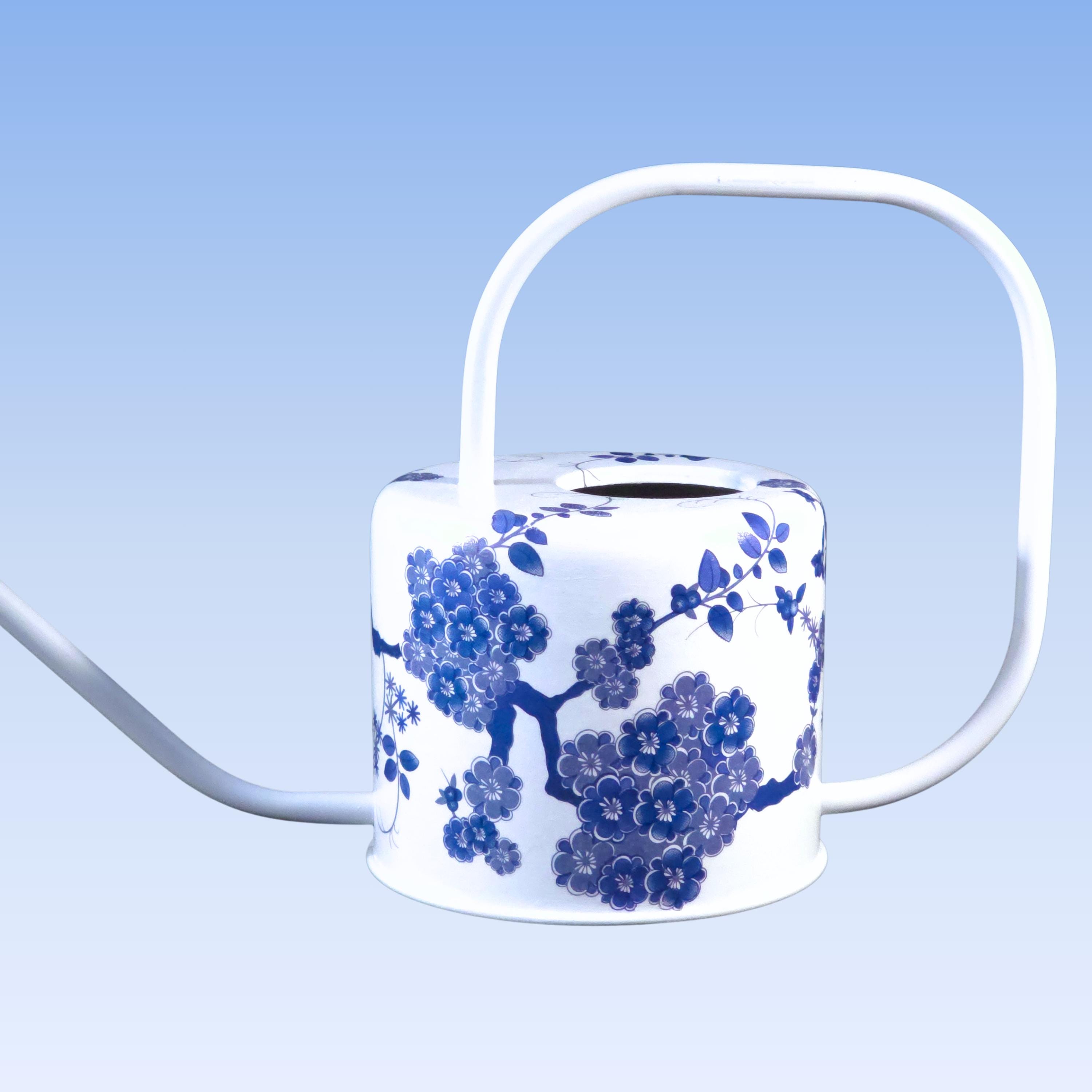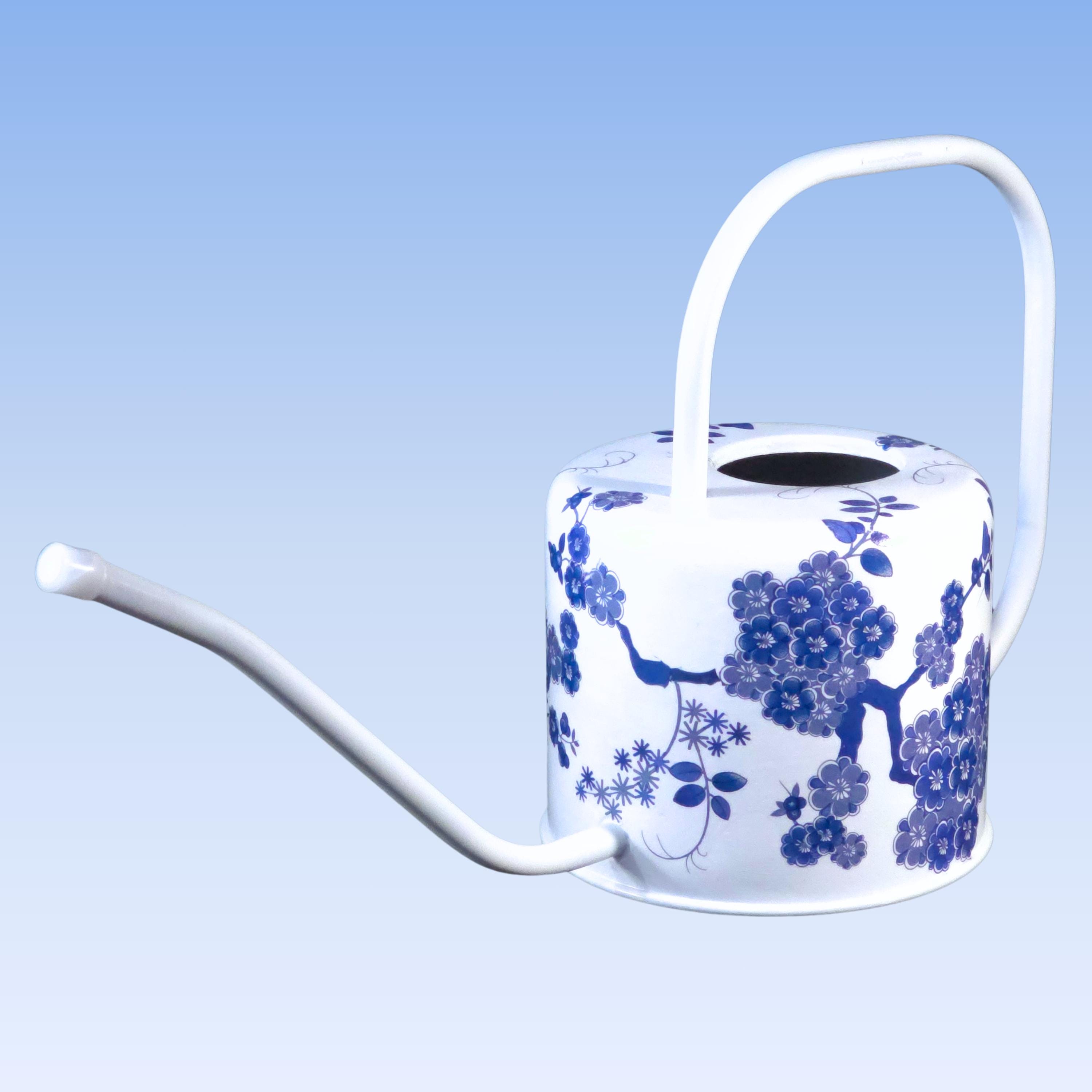 DETAILS: • 1-quart capacity • Hand-decoupaged metal watering can • Long spout for controlled indoor watering • White finish with blue-and-white chinoiserie design • Designed for indoor use • Decorative and functional