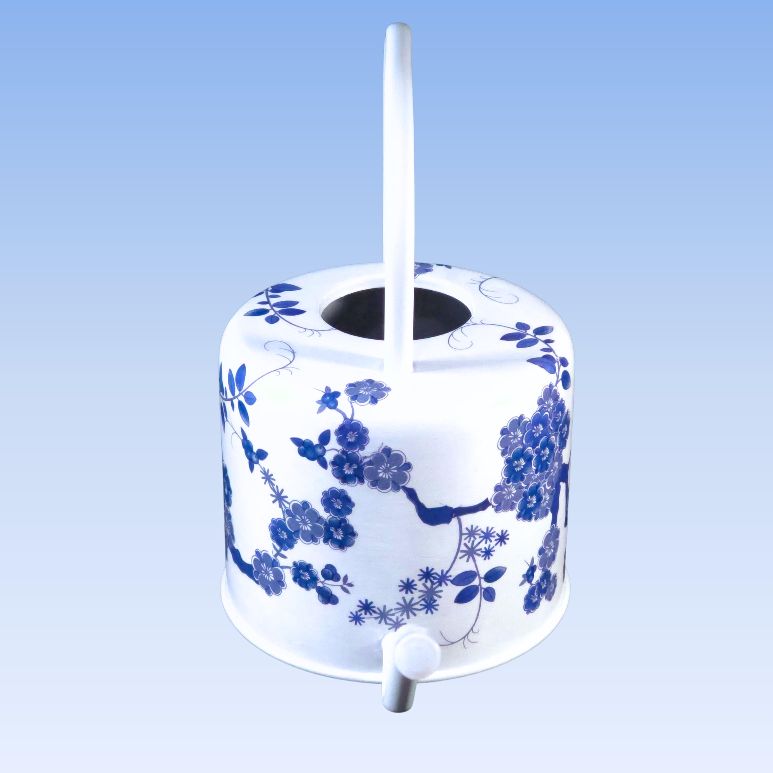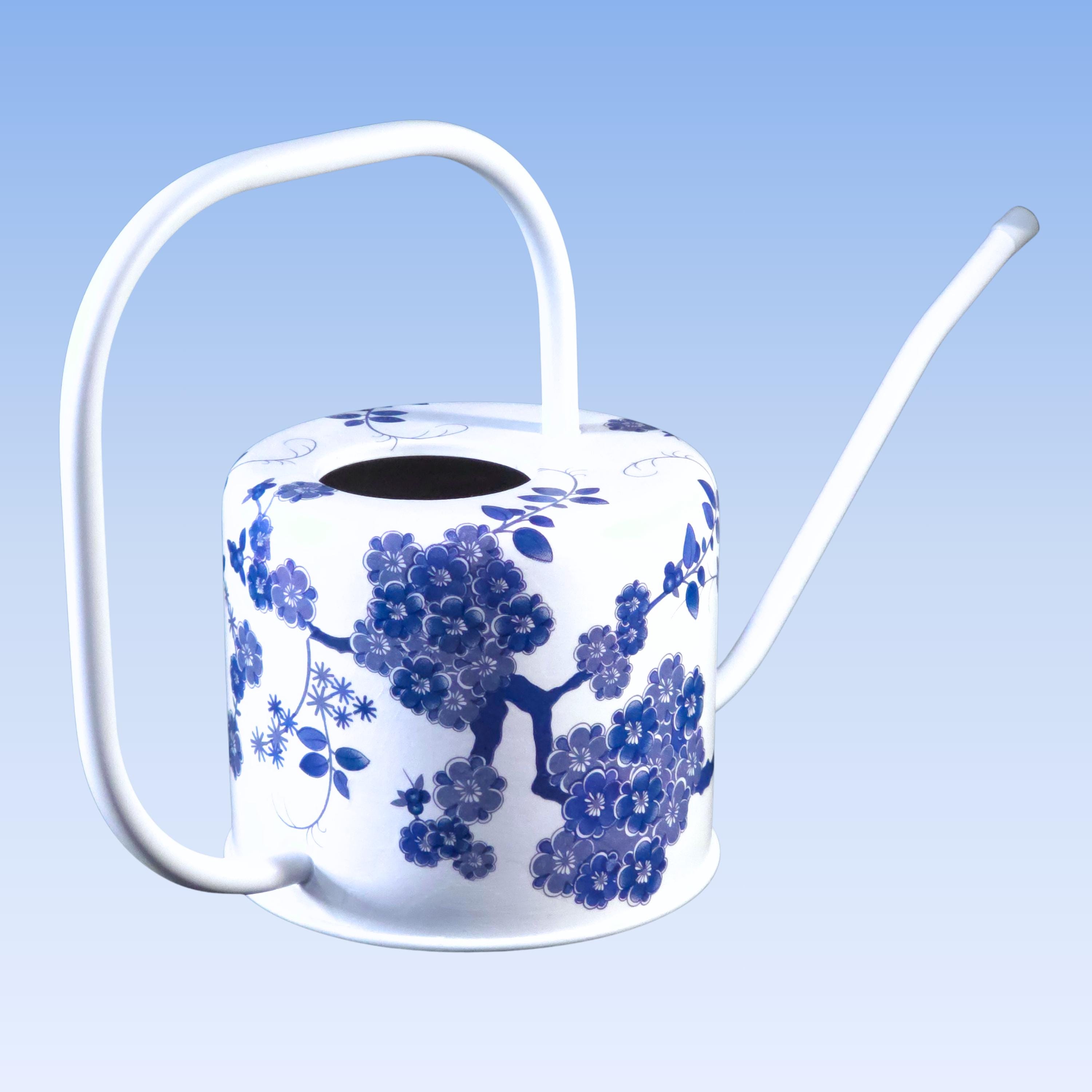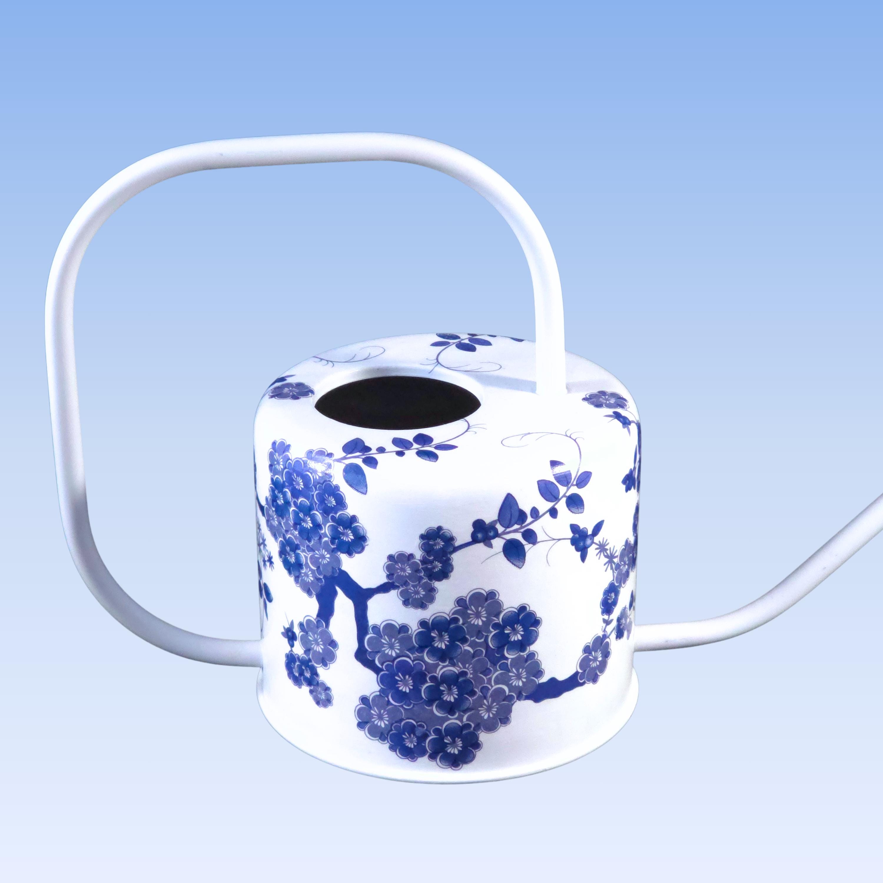 DETAILS: • 1-quart capacity • Hand-decoupaged metal watering can • Long spout for controlled indoor watering • White finish with blue-and-white chinoiserie design • Designed for indoor use • Decorative and functional
