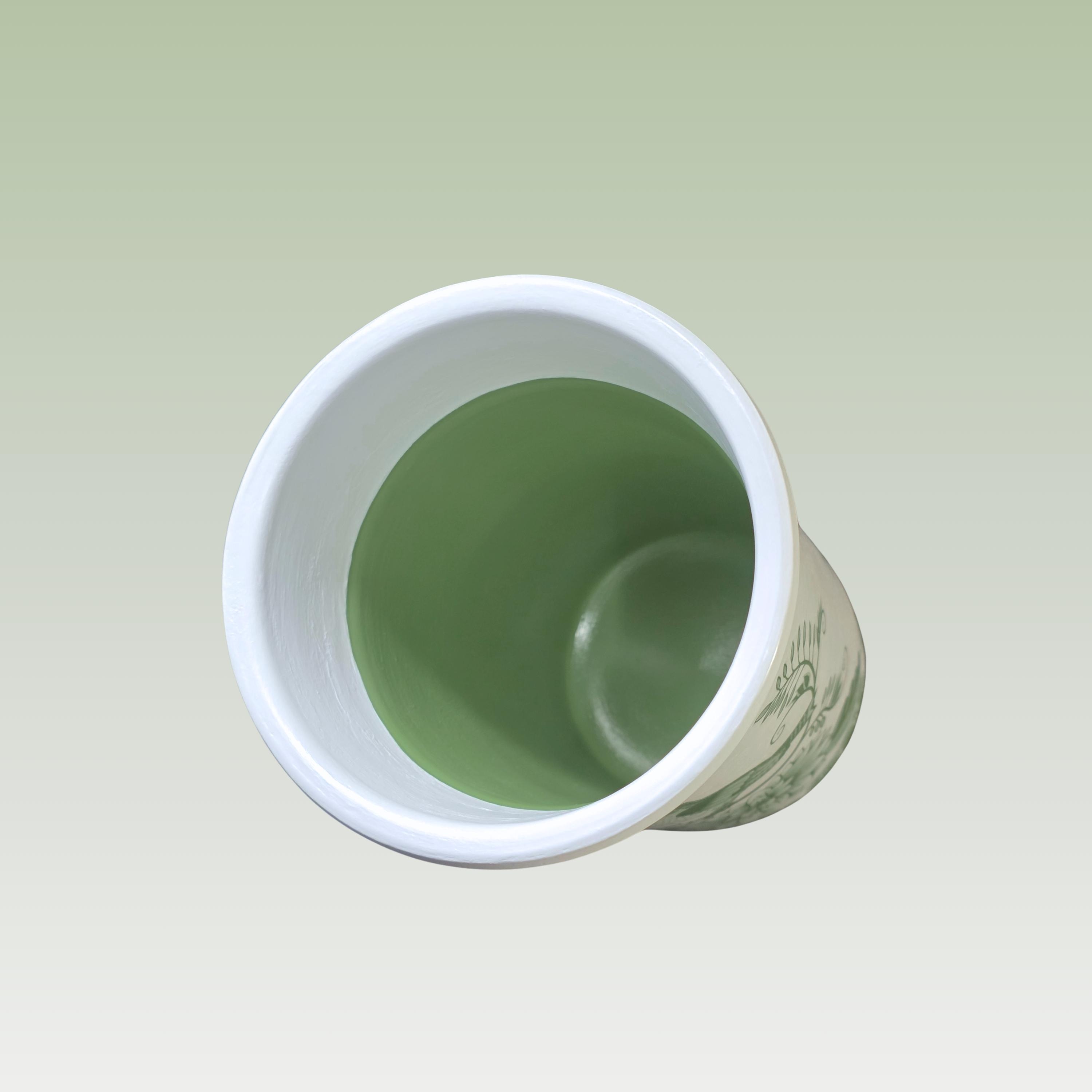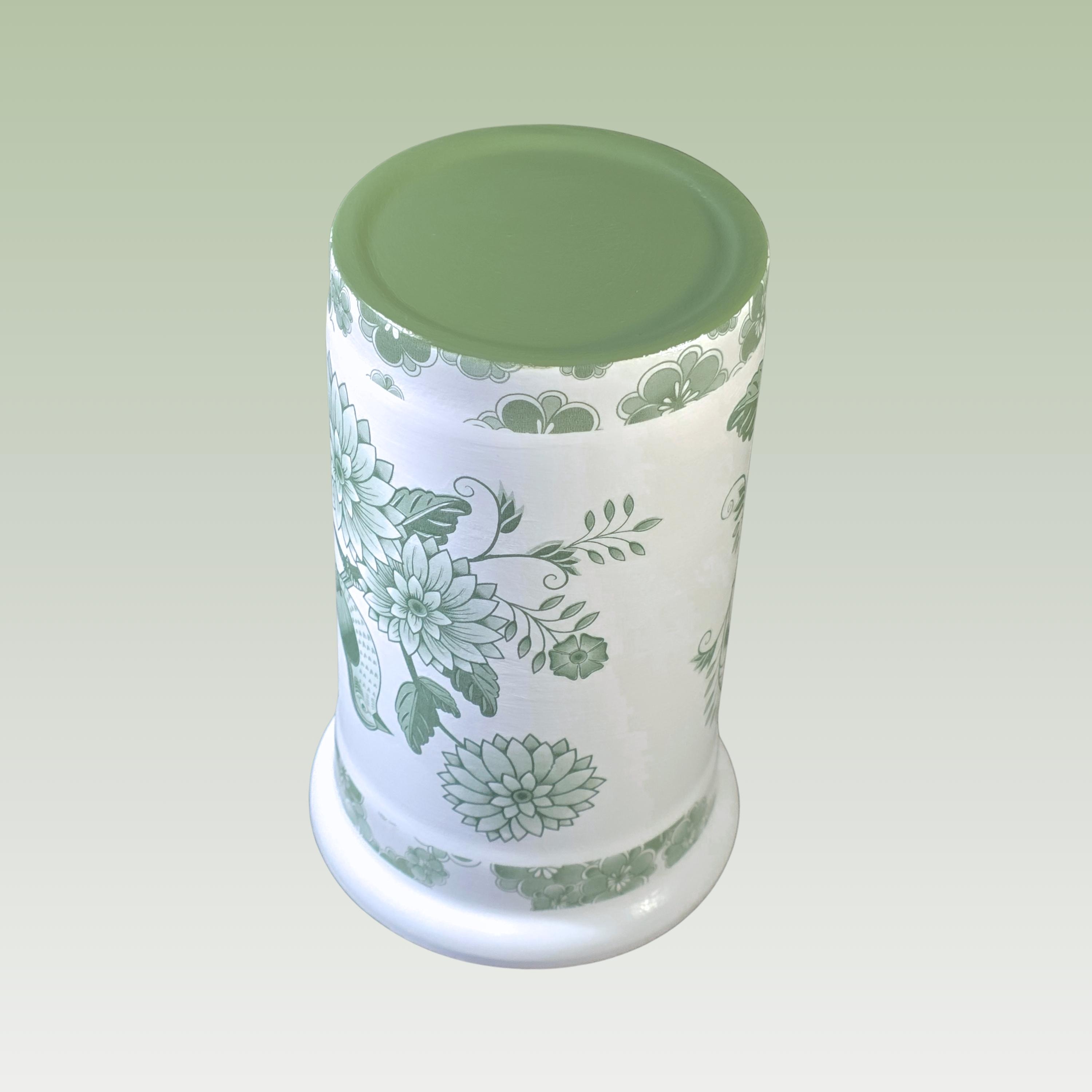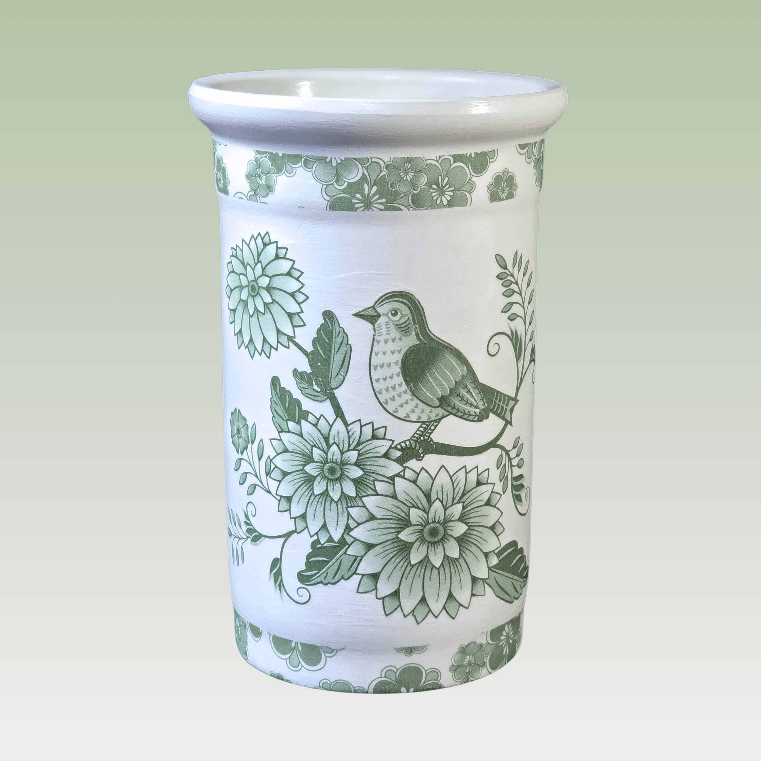 Elegant and timeless, this Green Chinoiserie tall crock is designed as a refined decorative accent with versatile styling options. Its slender, upright form makes it especially striking on countertops, shelves, and sideboards — whether displayed on its own, filled with long-stem florals, or repurposed as a kitchen utensil crock.