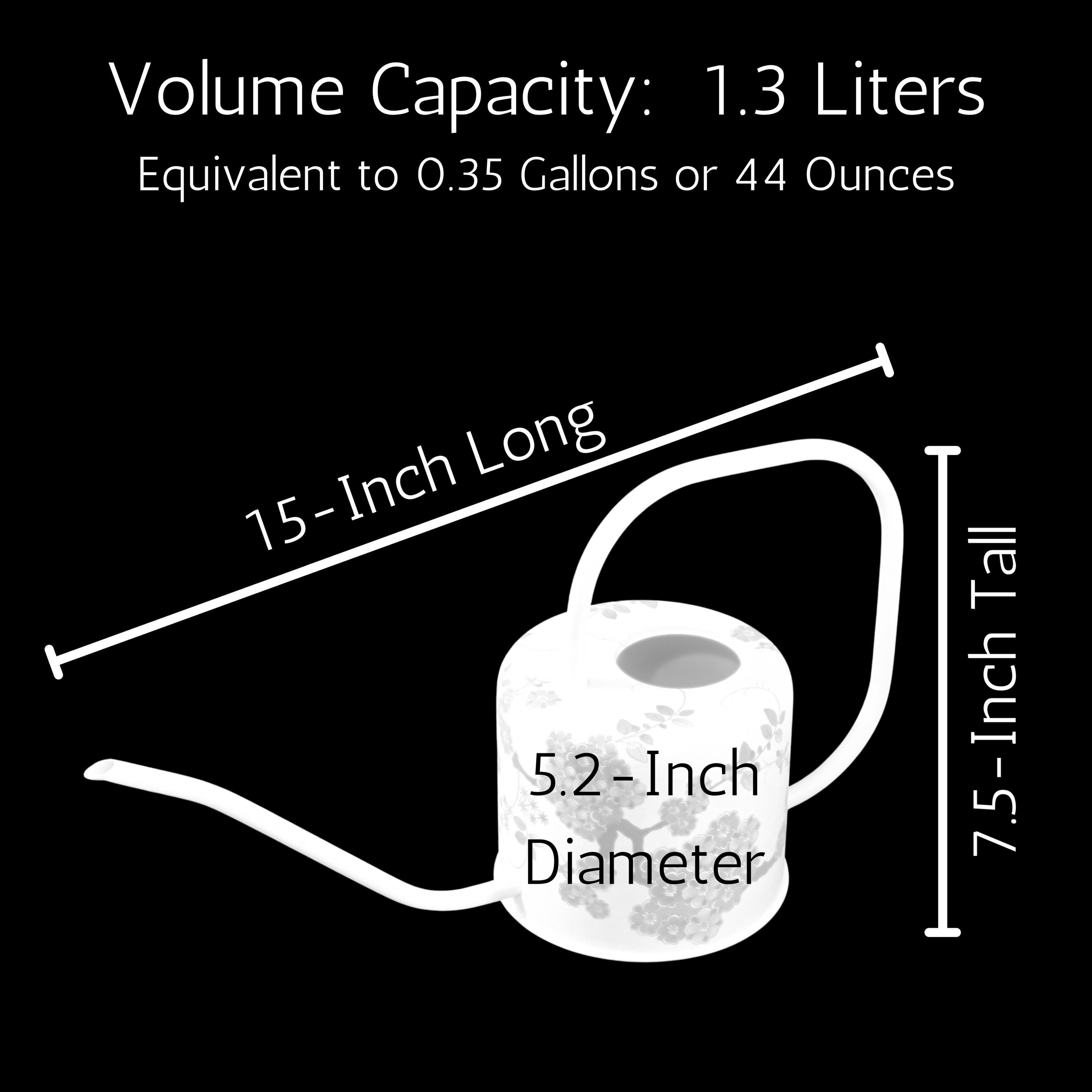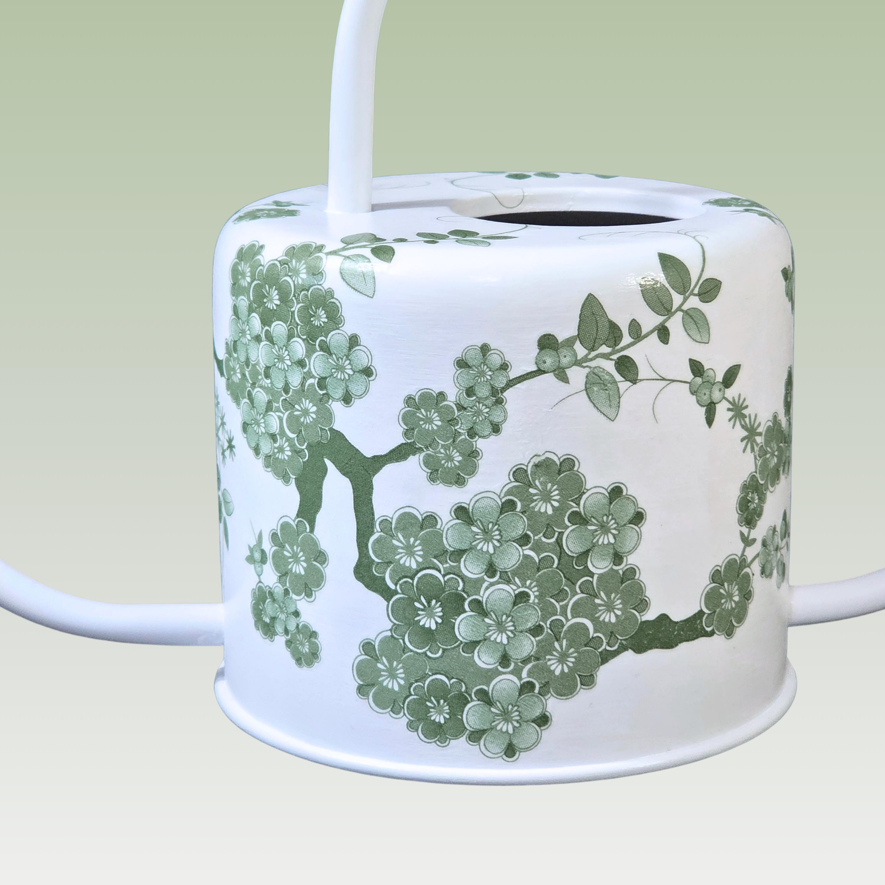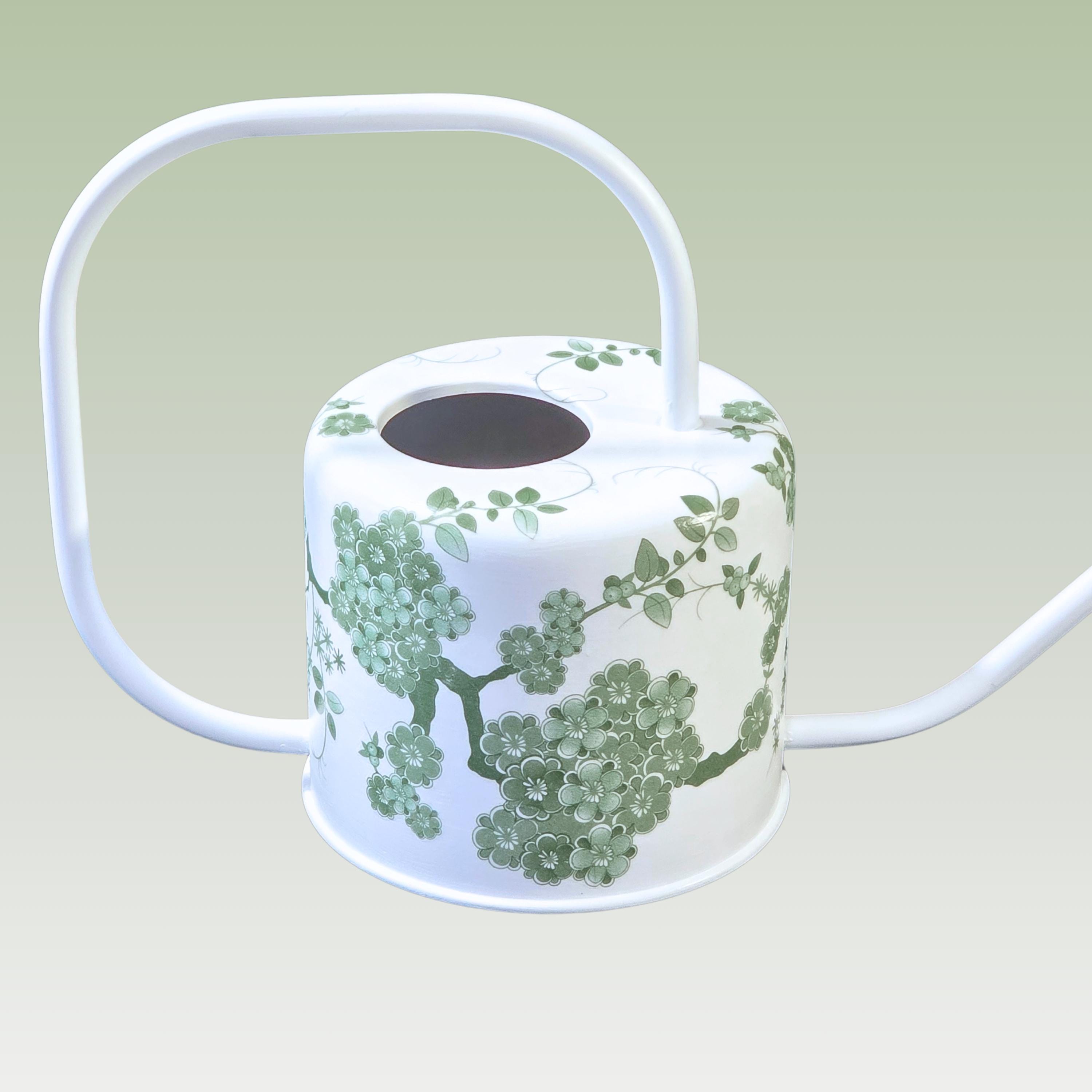 DETAILS: • 1-quart capacity • Hand-decoupaged metal watering can • Long spout for controlled indoor watering • White finish with green-and-white chinoiserie design • Designed for indoor use • Decorative and functional
